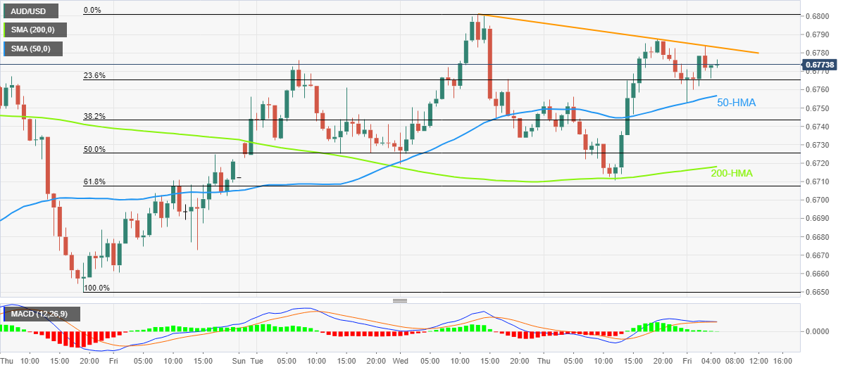 然而,0.6755附近的50小时均缐阻止澳元/美元即将下跌。